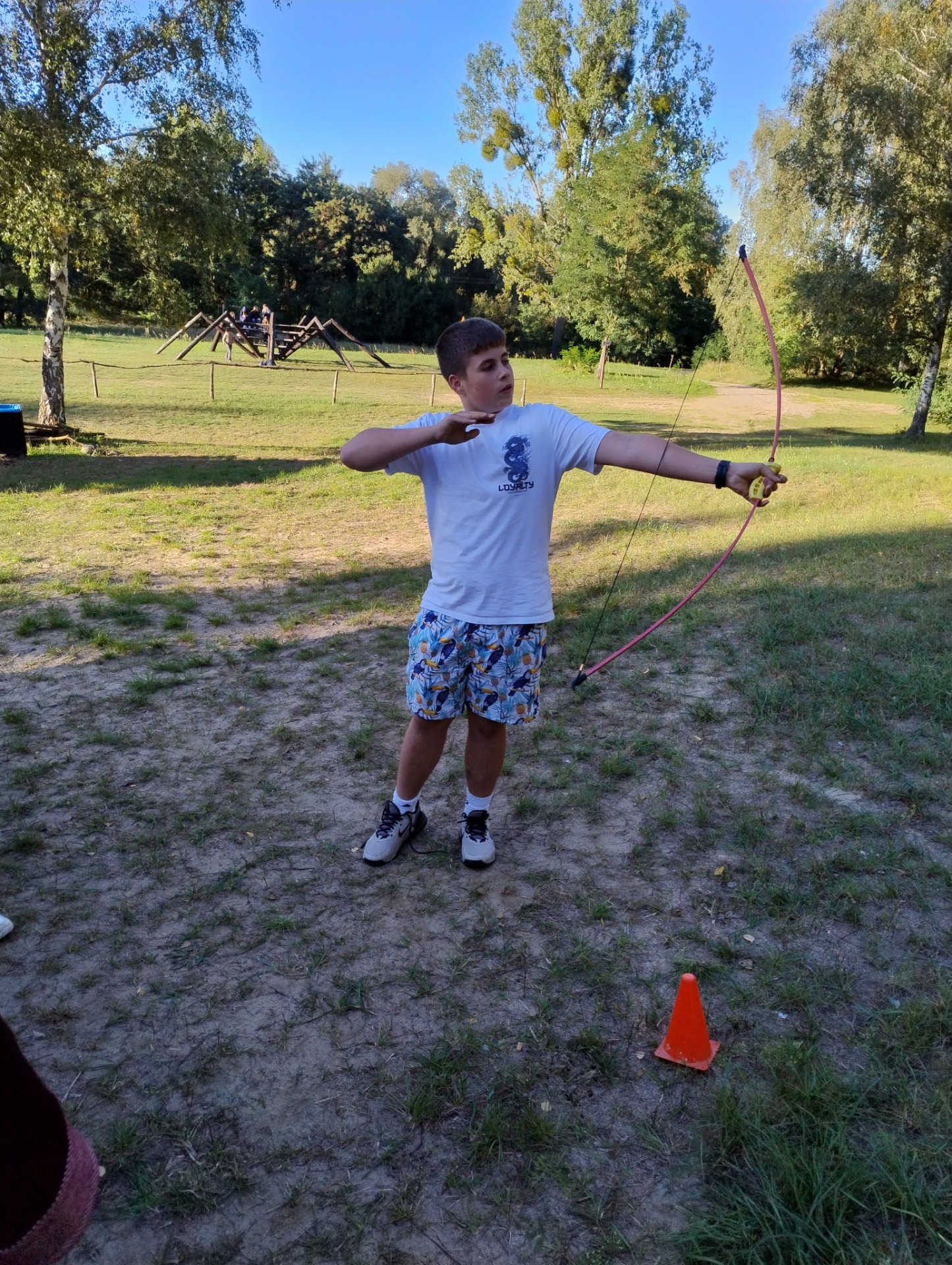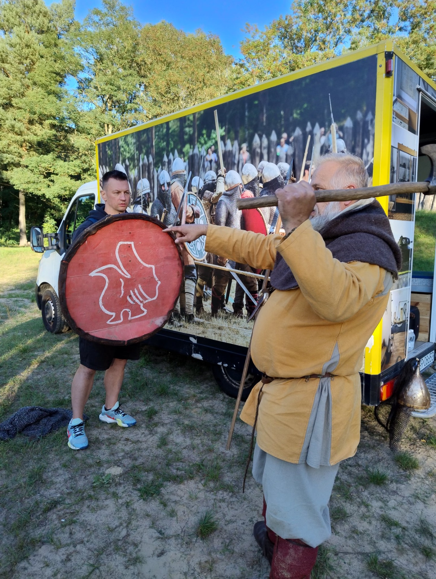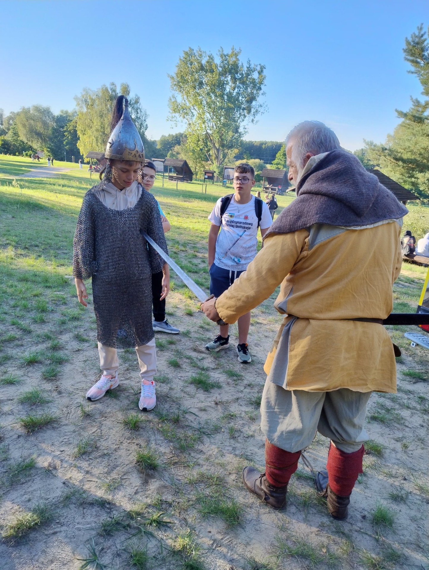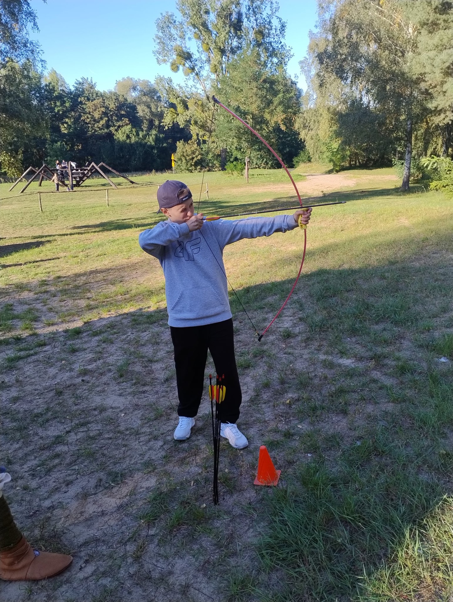 🏹 Po zejściu udaliśmy się na pobliską polanę 🌿, na której mogliśmy poczuć się jak prawdziwi rycerze 🛡️👑. Na uczestników czekały zajęcia z łucznictwa prowadzone przez pana Arkadiusza Małeckiego z Fundacji „Kuźnia Rzemiosła Dawnego” ⚔️🏹. Uczniowie mogli przymierzać średniowieczny oręż ⚔️🛡️, strzelać z łuku 🏹🎯 i próbować swoich sił w walce na miecze 🗡️🤺. Każdy moment był pełen emocji 😃💥 i pozwalał lepiej zrozumieć życie wojowników sprzed wieków. Wspólne ognisko 🔥🥖 po zajęciach stało się doskonałą okazją do integracji i zabawy 🎉🎶.
