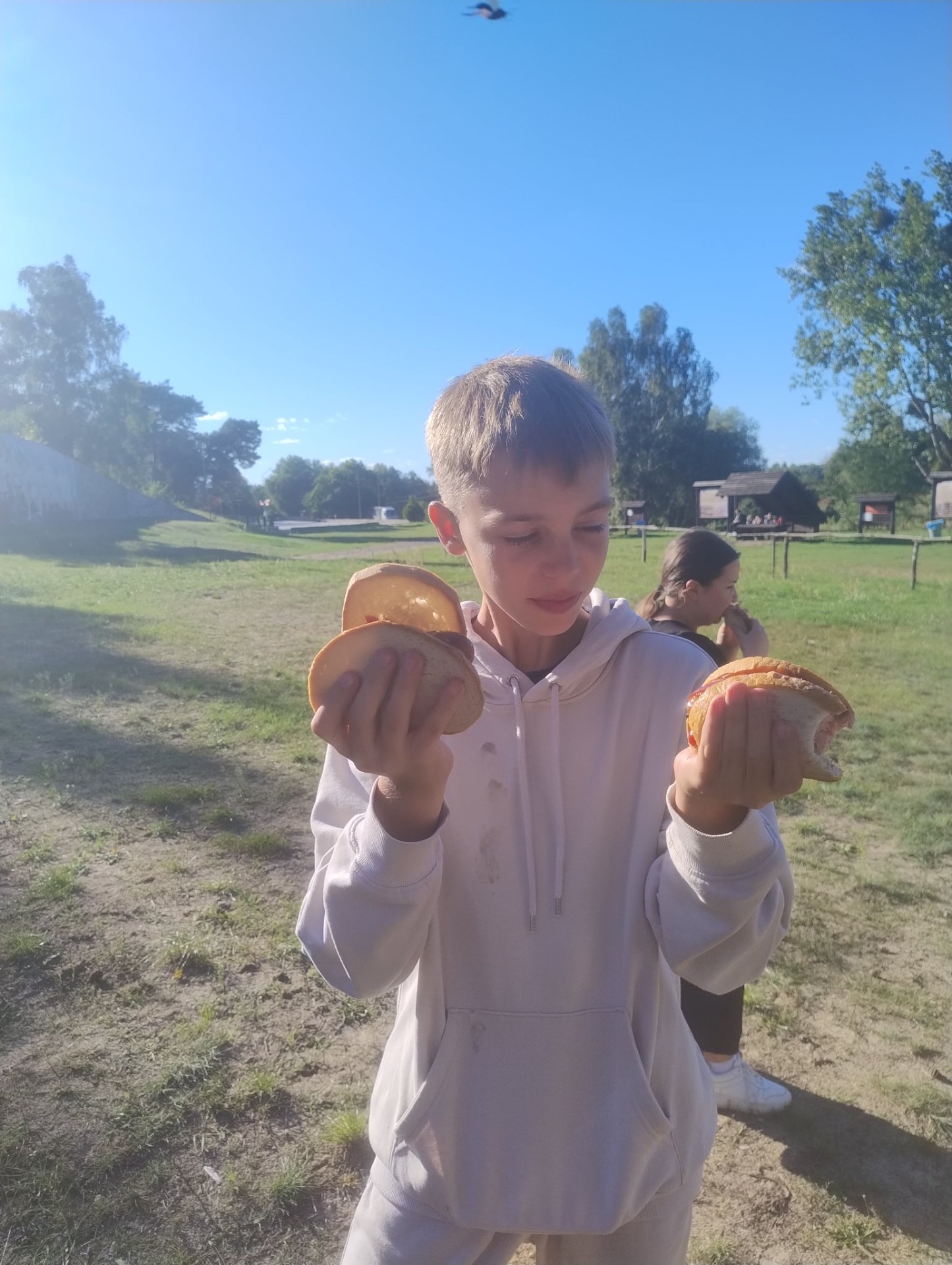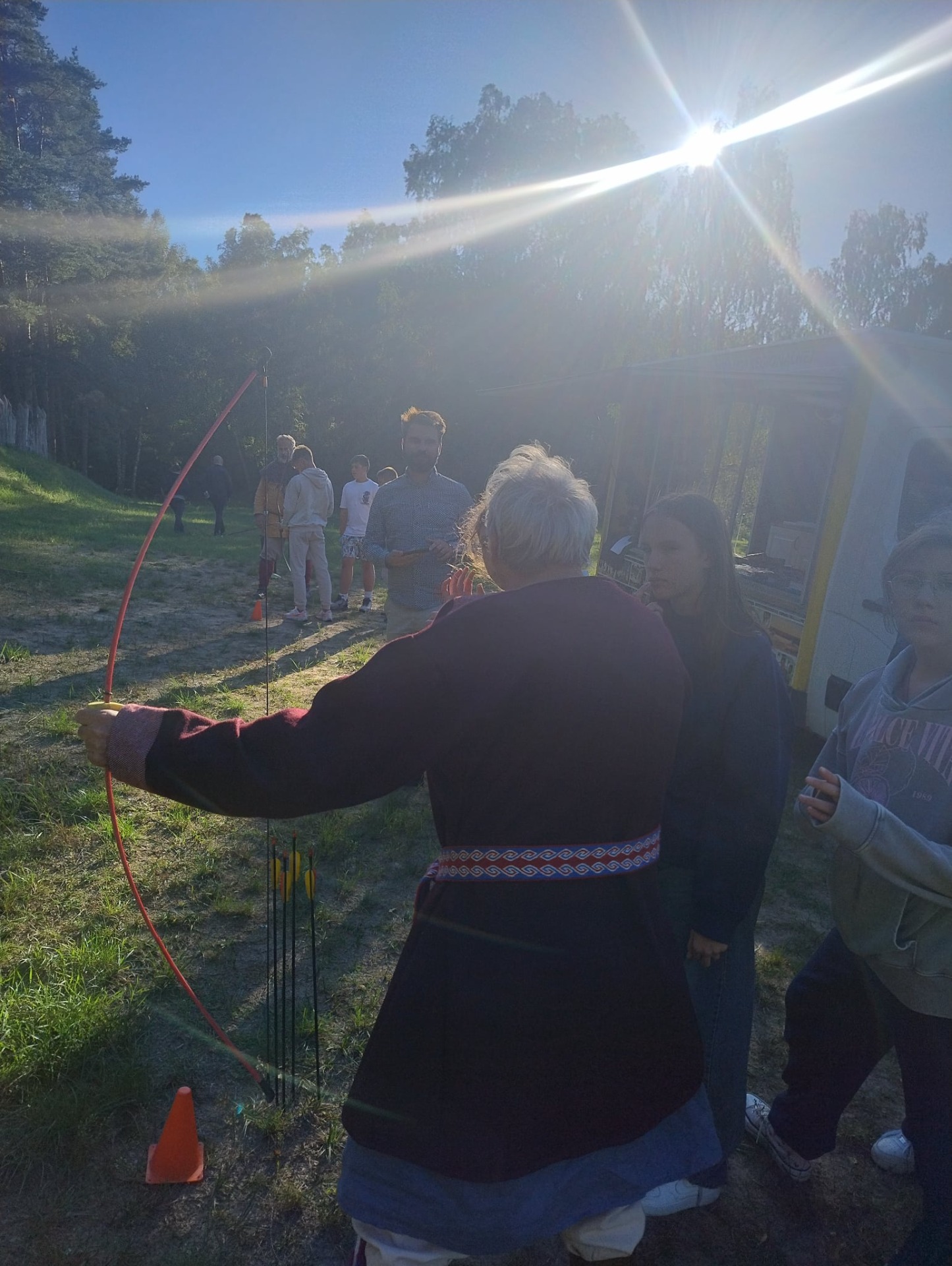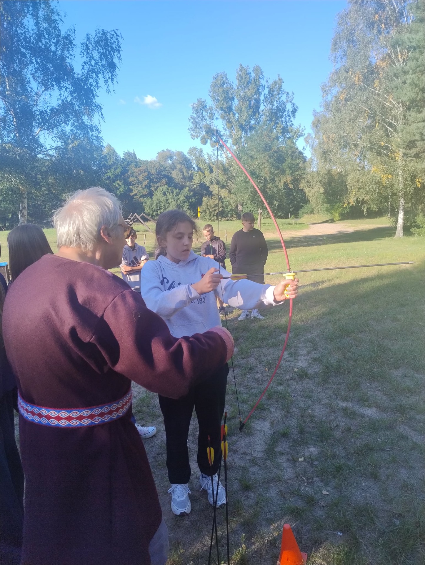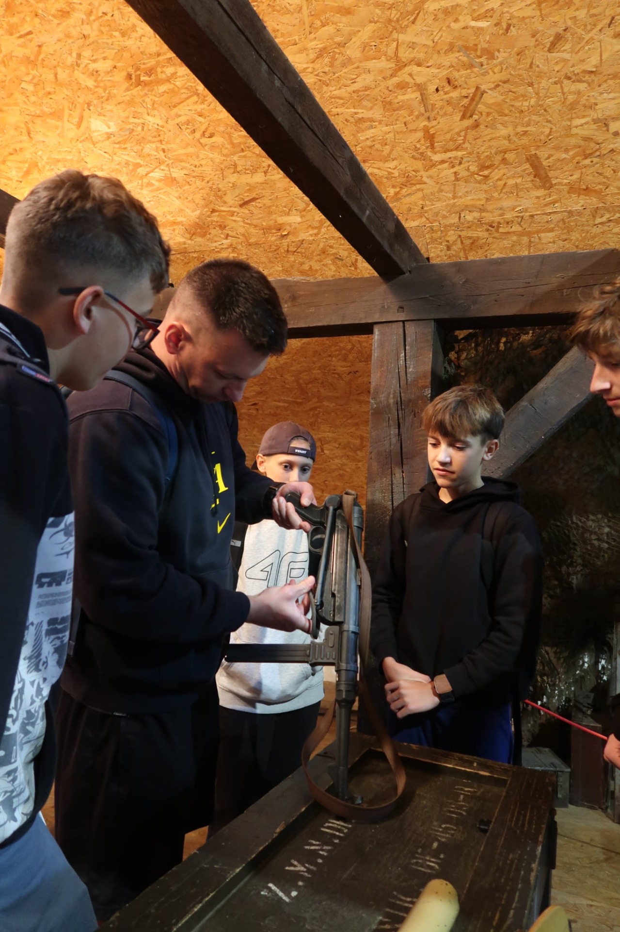 🏹 Po zejściu udaliśmy się na pobliską polanę 🌿, na której mogliśmy poczuć się jak prawdziwi rycerze 🛡️👑. Na uczestników czekały zajęcia z łucznictwa prowadzone przez pana Arkadiusza Małeckiego z Fundacji „Kuźnia Rzemiosła Dawnego” ⚔️🏹. Uczniowie mogli przymierzać średniowieczny oręż ⚔️🛡️, strzelać z łuku 🏹🎯 i próbować swoich sił w walce na miecze 🗡️🤺. Każdy moment był pełen emocji 😃💥 i pozwalał lepiej zrozumieć życie wojowników sprzed wieków. Wspólne ognisko 🔥🥖 po zajęciach stało się doskonałą okazją do integracji i zabawy 🎉🎶.