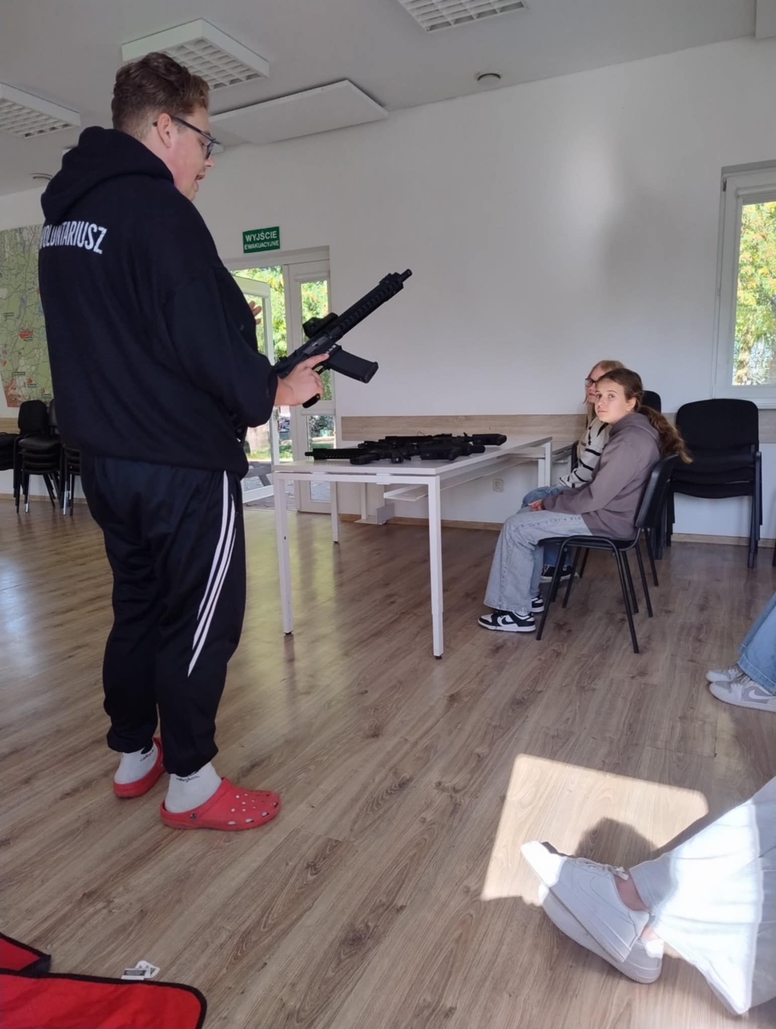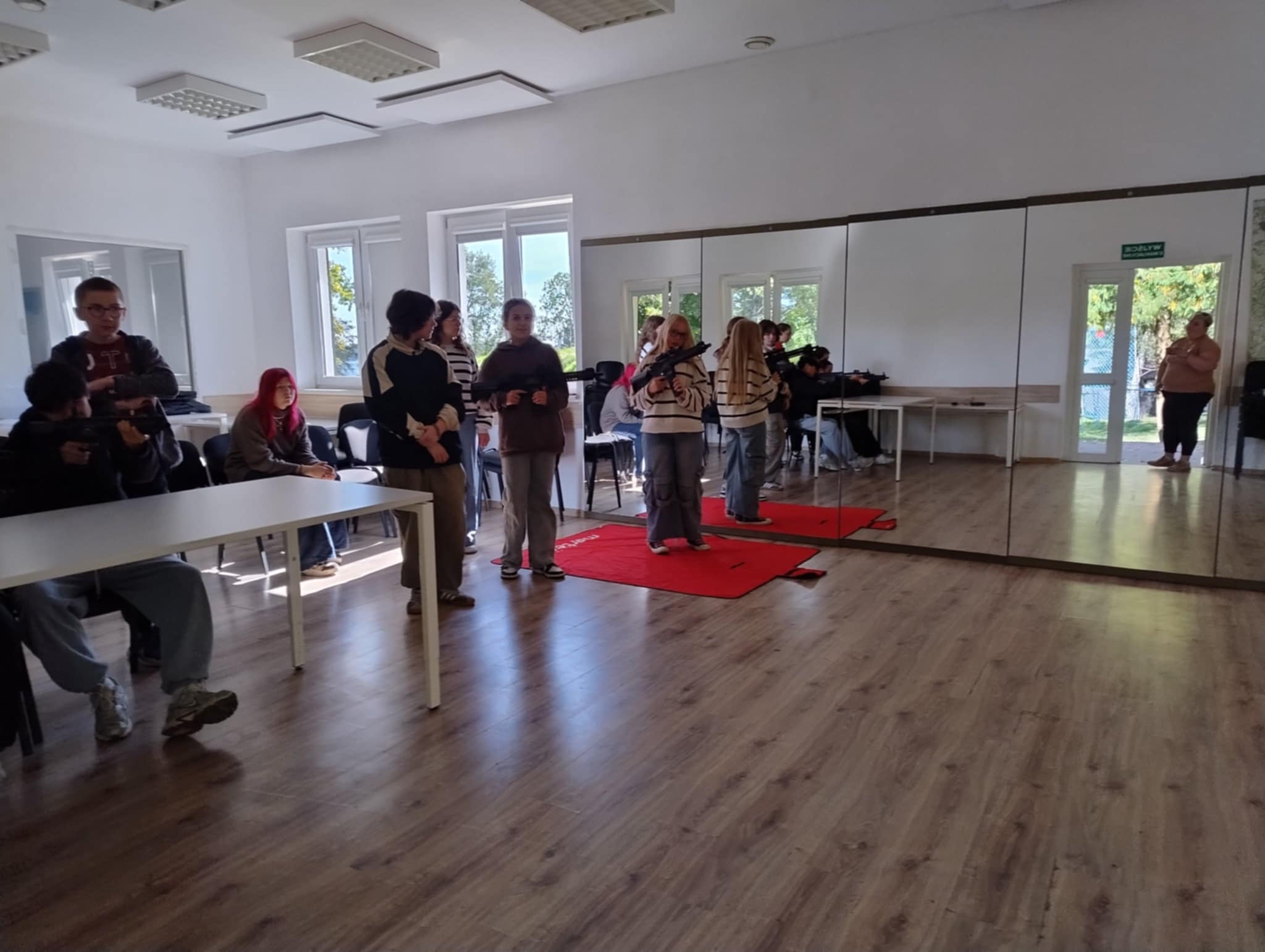 Później przyszła pora na prawdziwą dawkę adrenaliny 😎🔫 – lasertag! Nasz instruktor, pan Kuba, przedstawił nam cykl ćwiczeń w strzelaniu do celów 🎯. Potem sprawdziliśmy się w escaperoomie 🗝🕵️, a na koniec stoczyliśmy wielką drużynową bitwę laserową 💥🔵🔴. Rywalizacja była zacięta 💪, ale przede wszystkim każdy świetnie się bawił 😄.