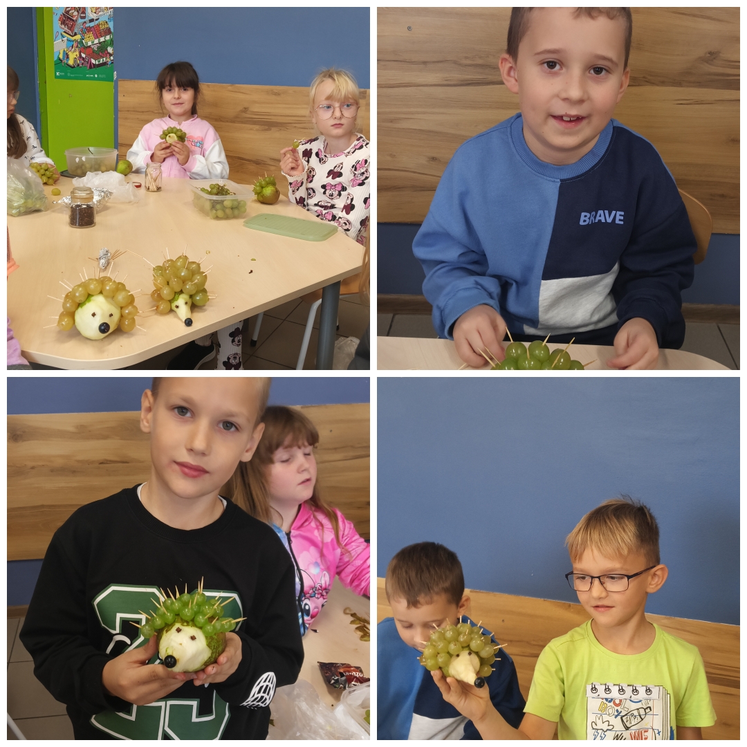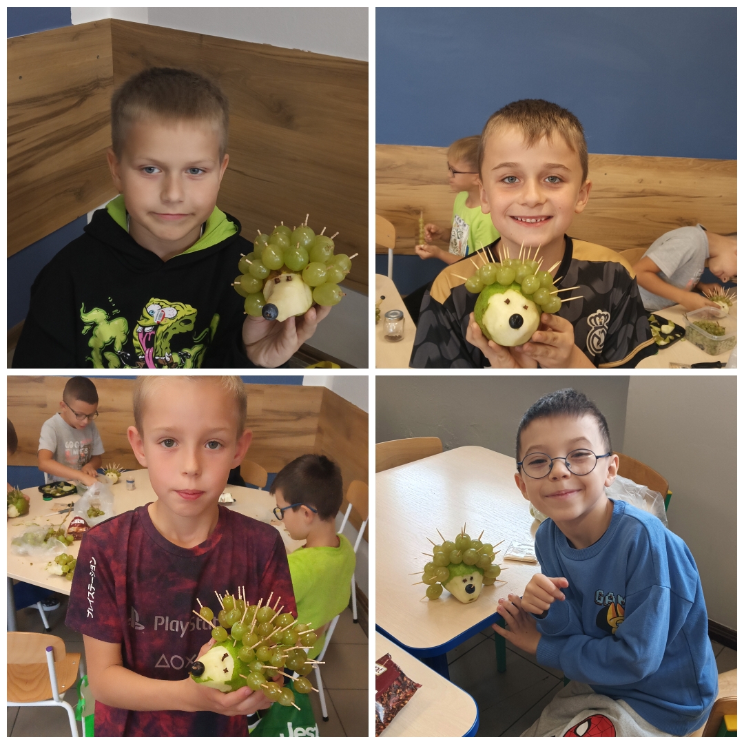Podsumowaniem zajęć była twórcza i smaczna praca praktyczna – dzieci wykonały kolorowe, owocowe jeżyki 🦔🍓🍏. Było zdrowo, pysznie i bardzo kreatywnie!