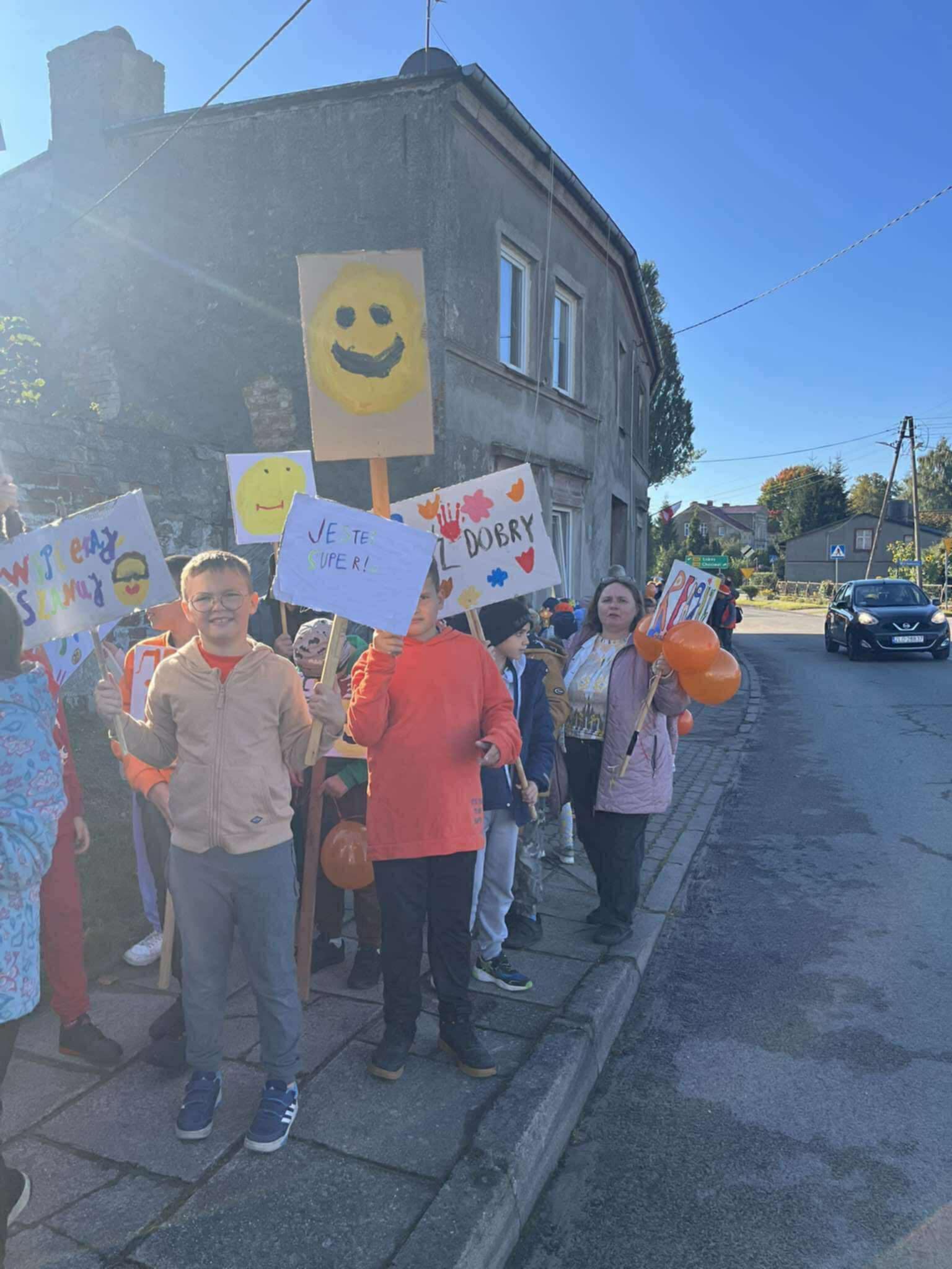 W dniu dzisiejszym w ramach Tygodnia Przeciwdziałania Przemocy Rówieśniczej uczniowie klas 1-3 wraz z przedszkolakami oraz wychowawcami, przedstawicielami OPS i pracownikami Domu Kultury w Dobrej uczestniczyli w marszu pod hasłem „Zauważ! Zareaguj! Powiedz STOP!”🛑