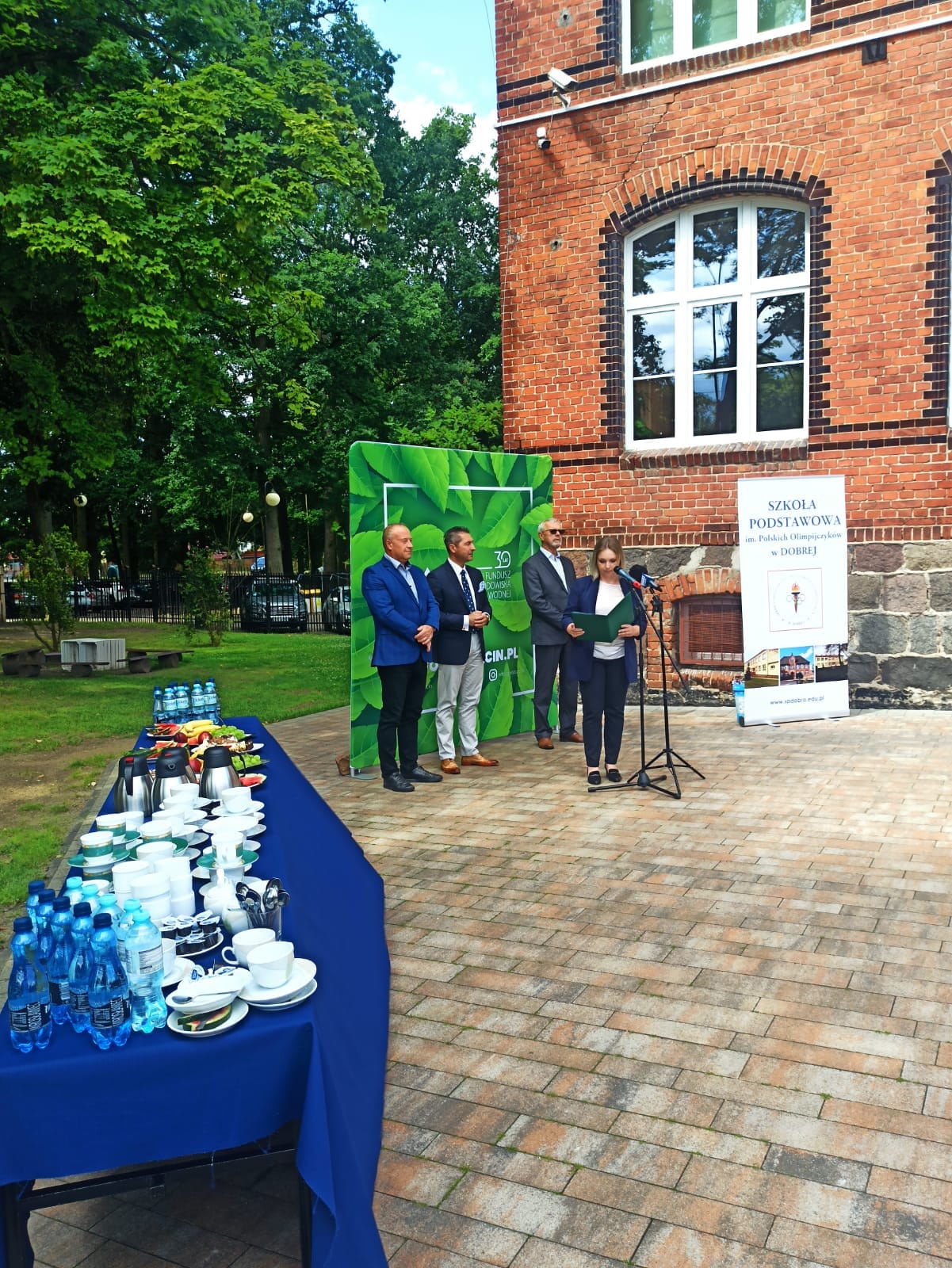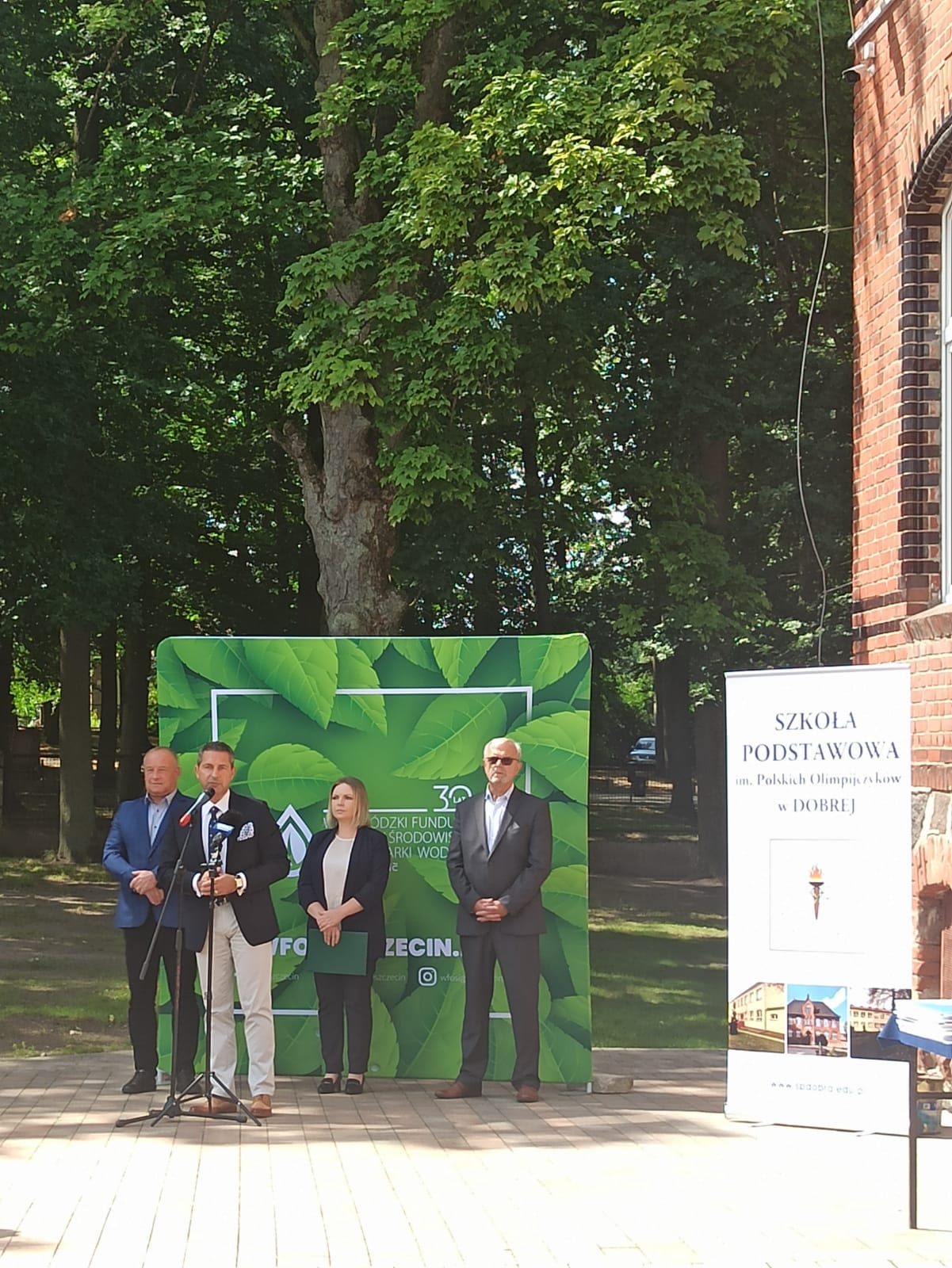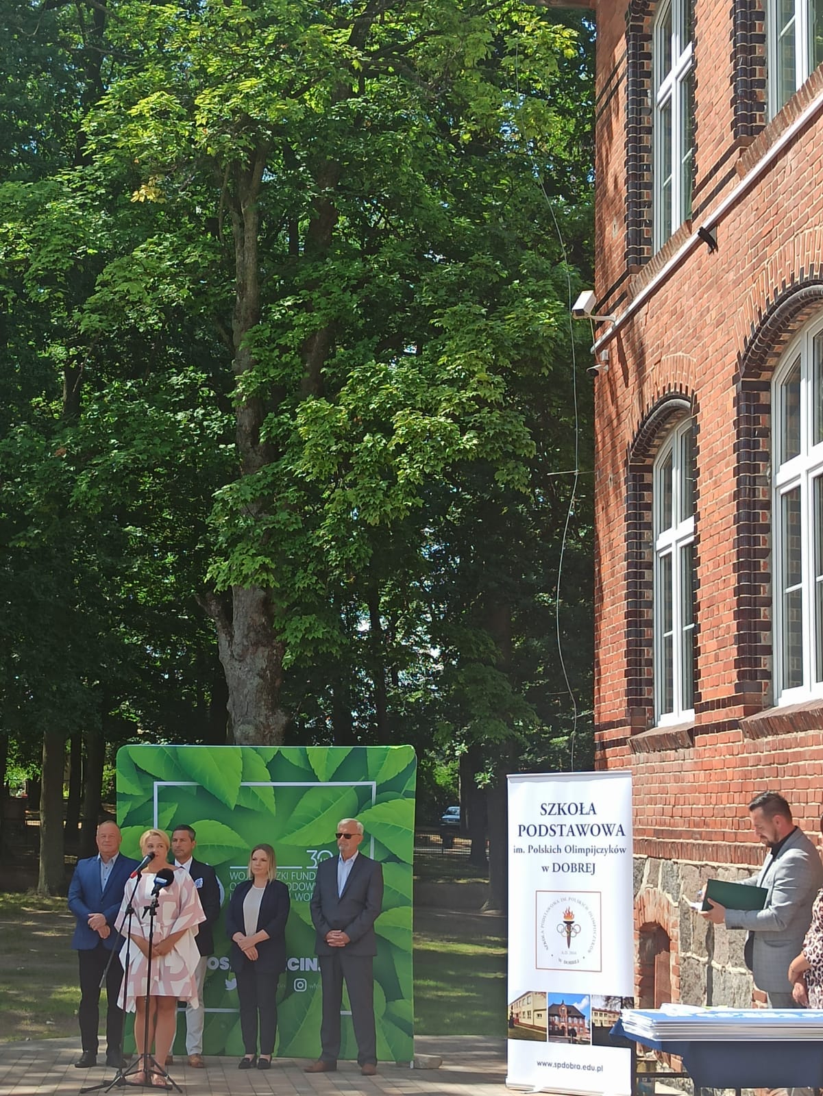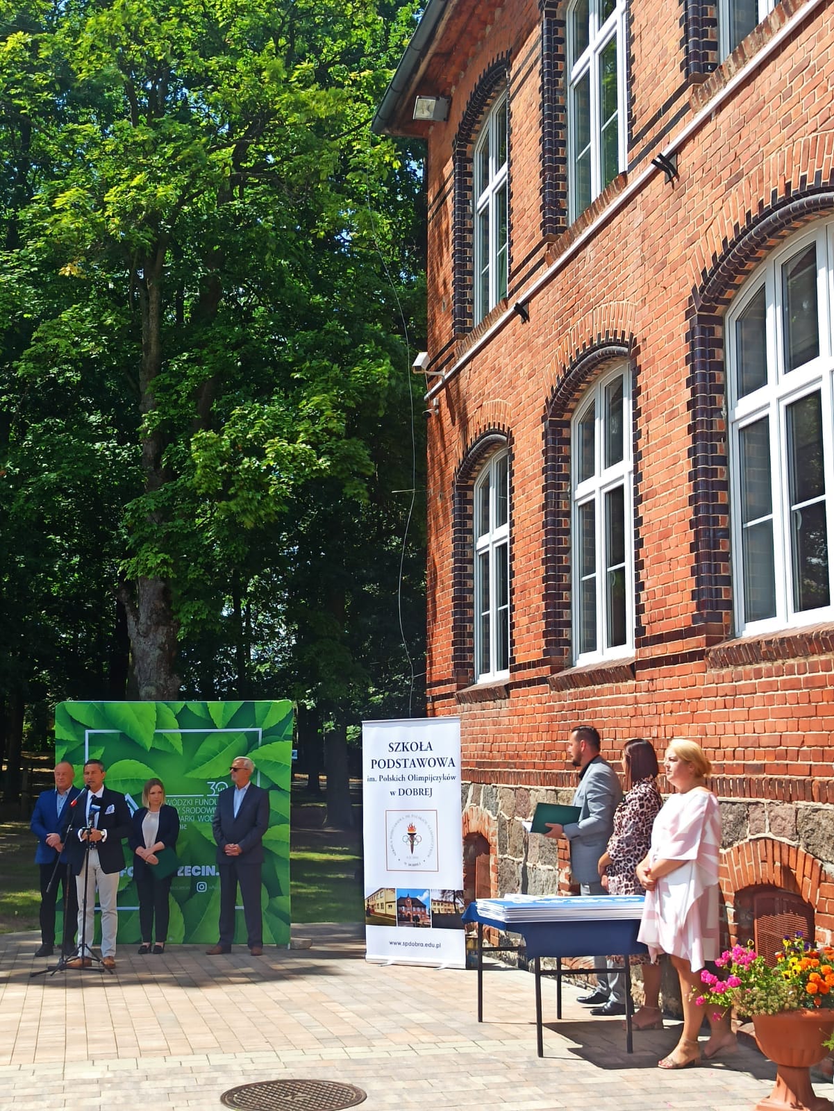 Dnia 25 lipca br. w Szkole Podstawowej w Dobrej im. Polskich Olimpijczyków, zastępca Wojewódzki Fundusz Ochrony Środowiska i Gospodarki Wodnej w Szczecinie Pani Joanna Grab oraz poseł na sejm Artur Szałabawka, oficjalnie wręczyli czeki oraz umowy dla 17 szkół w naszym województwie na realizację nowoczesnej Ekopracowni.