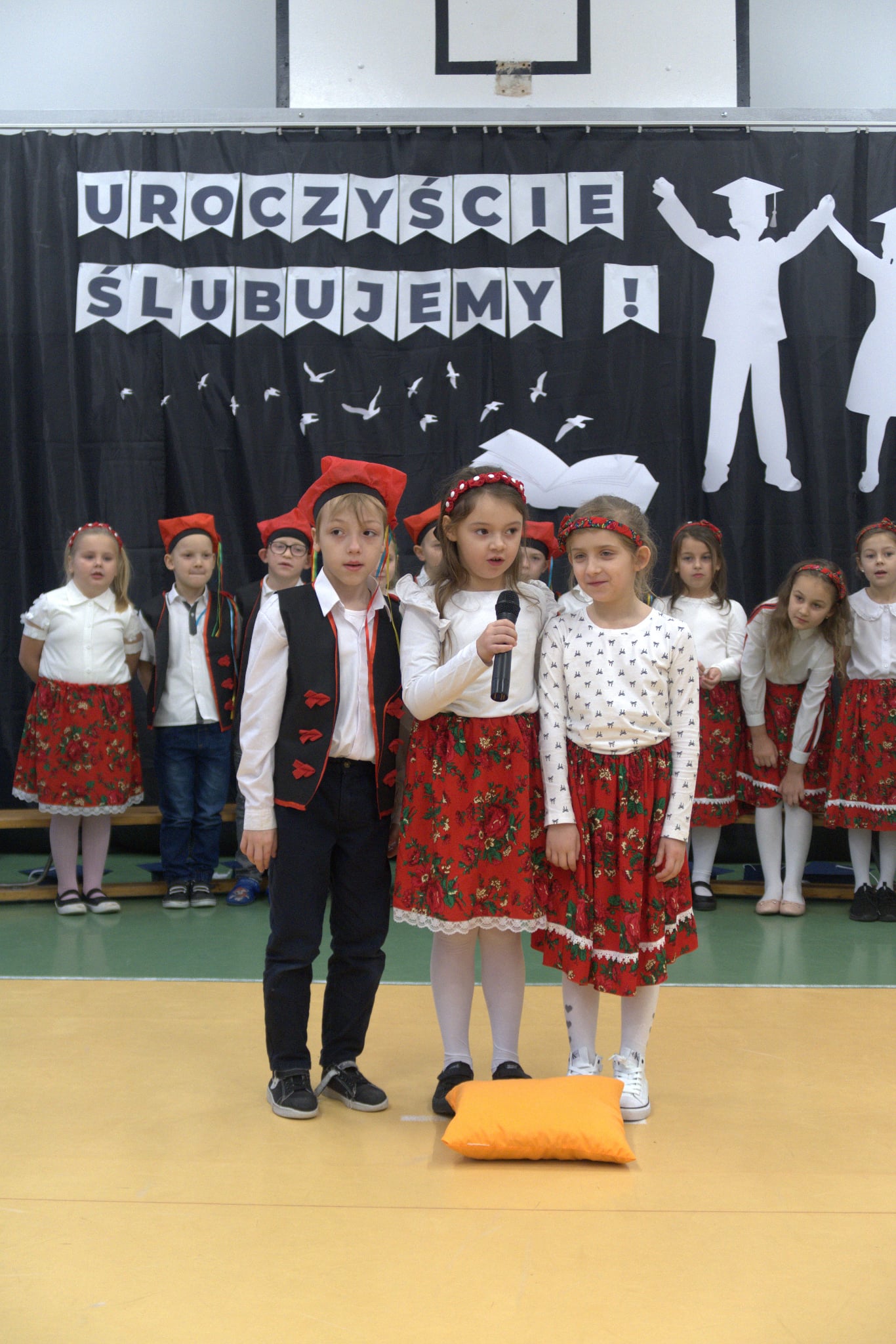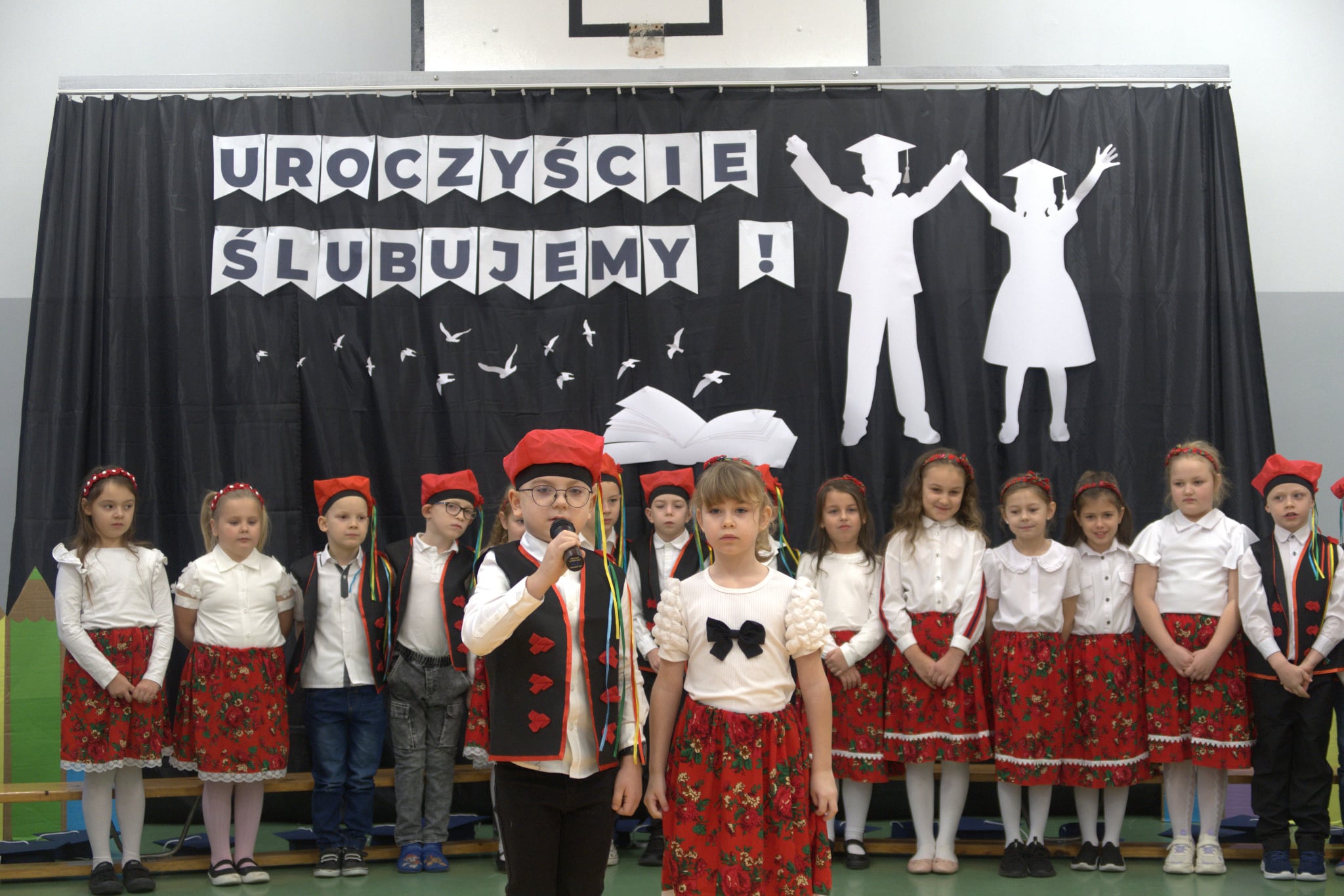 „Dziś miano ucznia z dumą przyjmuję, pilnie się uczyć uroczyście ślubuję!