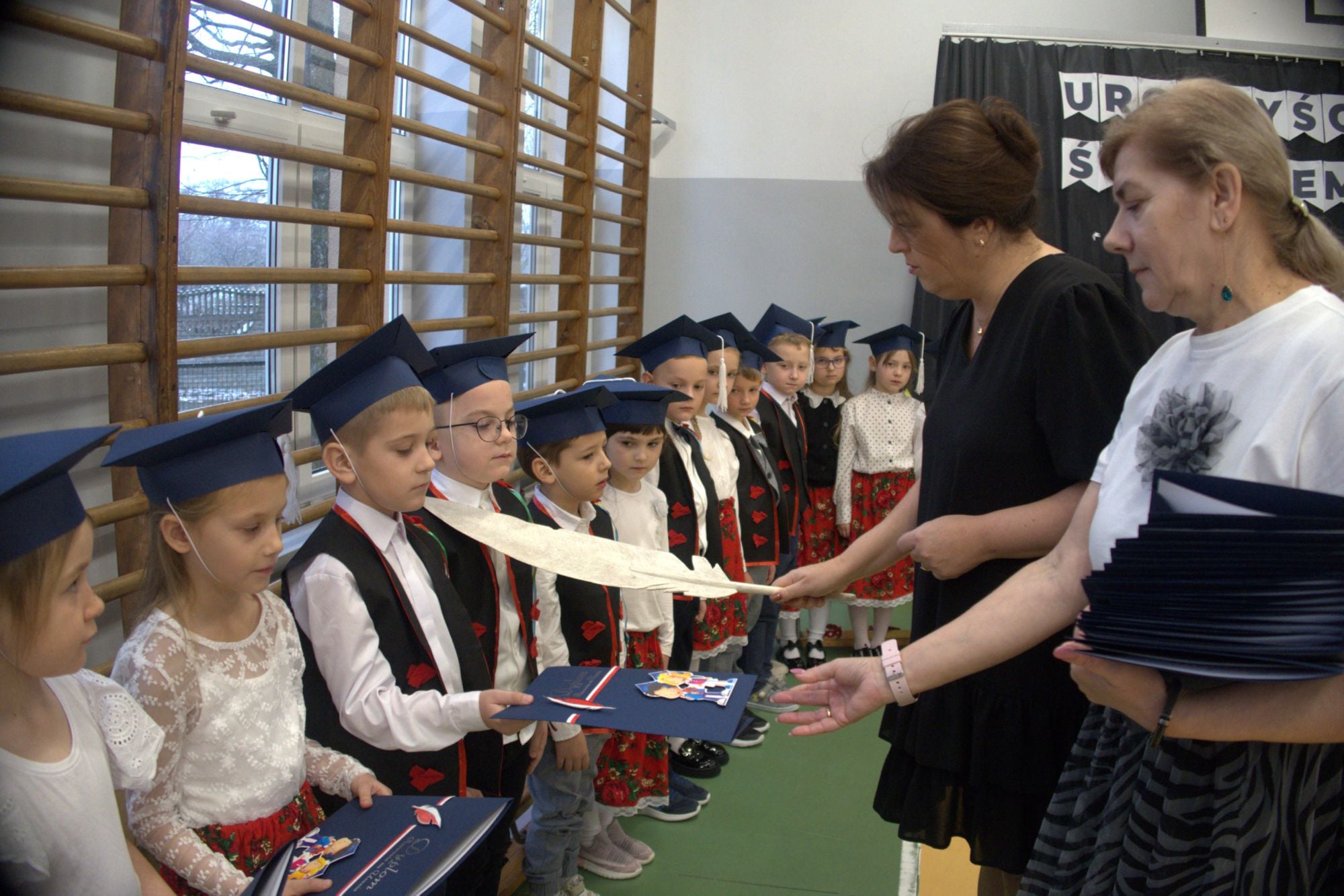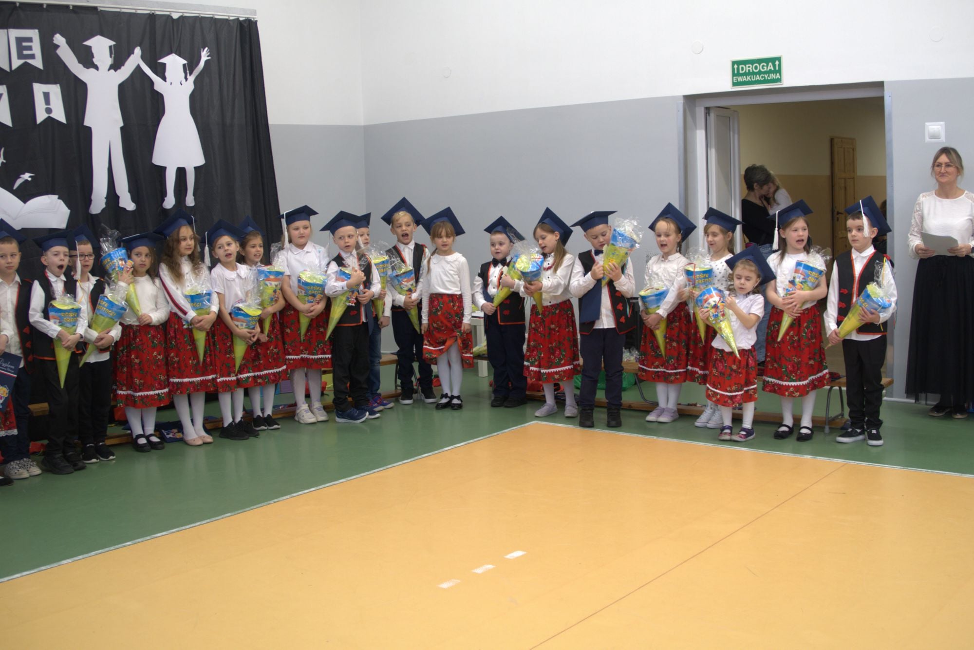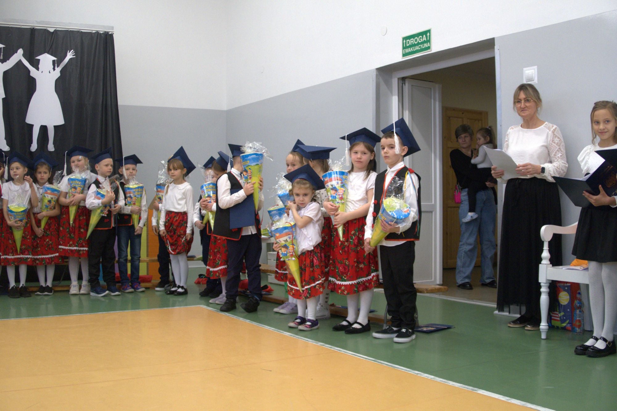 20 listopada 2025 r. w naszej szkole miała miejsce niezwykle ważna uroczystość – Pasowanie na Ucznia. W obecności zaproszonych gości, dyrekcji szkoły, rodziców i dziadków, pierwszoklasiści śpiewem, tańcem, recytacją oraz bogatą wiedzą, udowodnili, że w pełni zasługują na miano UCZNIA.
