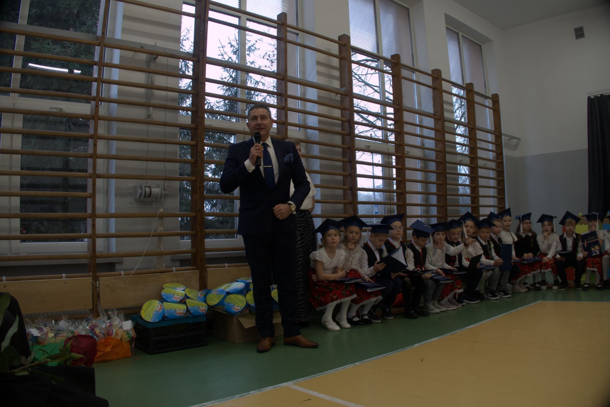 W podniosłej atmosferze, przed sztandarem szkoły pierwszoklasiści złożyli ślubowanie. Obiecali być dobrymi uczniami, godnie reprezentować szkołę, kochać ojczyznę, a swym zachowaniem i nauką sprawiać radość rodzicom i nauczycielom. Wyjątkowym momentem uroczystości, na który wszyscy z niecierpliwością czekali, był akt pasowania, podczas którego pani Dyrektor Małgorzata Podgórska mianowała każdego pierwszoklasistę uczniem Szkoły Podstawowej w Dobrej im. Polskich Olimpijczyków. Na zakończenie uczniowie otrzymali pamiątkowe dyplomy oraz drobne upominki od Burmistrza Dobrej, Dyrekcji Szkoły, Rady Rodziców, Dyrektora Biblioteki Publicznej i Dyrektora Domu Kultury.