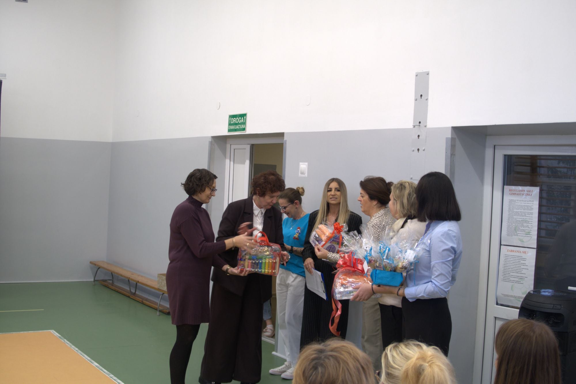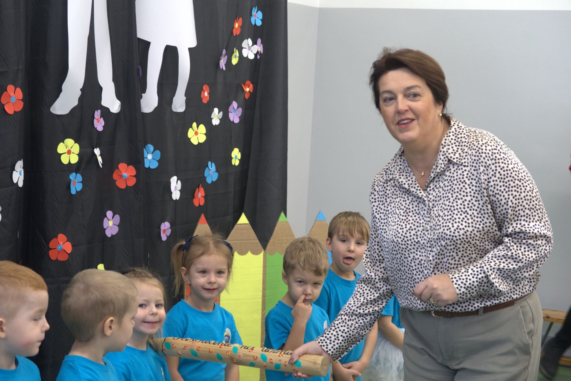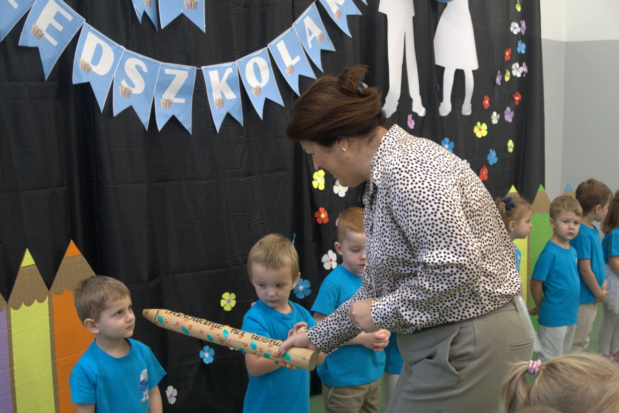 Dzieci zaprezentowały krótki program artystyczny – piosenki, wierszyki oraz zabawy ruchowe, które wzbudziły wiele uśmiechów i wzruszeń wśród zgromadzonych. Po występach odbył się najważniejszy punkt wydarzenia: uroczyste pasowanie, którego dokonała Pani Dyrektor przy pomocy „czarodziejskiego ołówka”.