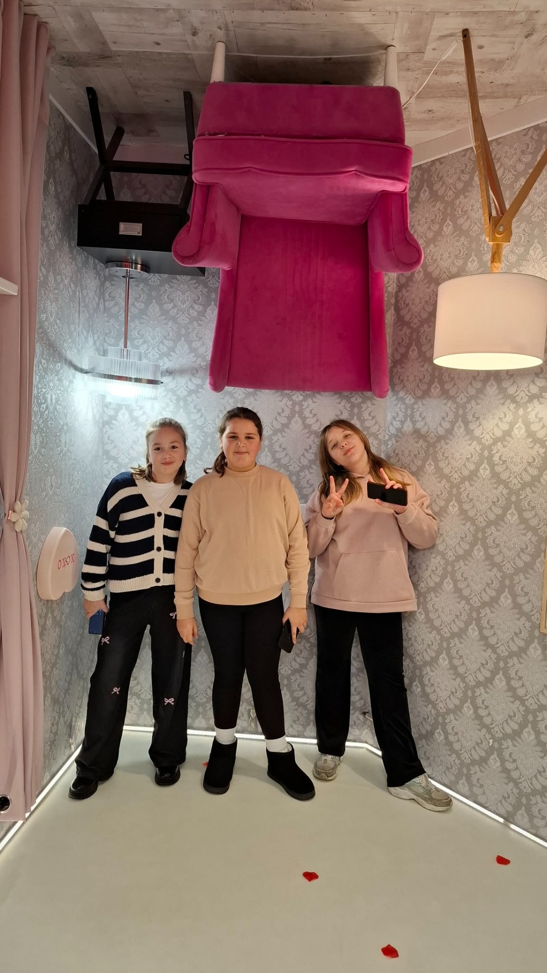 Po części historycznej przyszedł czas na coś zupełnie innego. Uczniowie odwiedzili radosne i kreatywne Muzeum Be Happy, gdzie mogli zrobić wesołe zdjęcia i dać się porwać kolorowym, interaktywnym instalacjom. To miejsce okazało się świetną przestrzenią do zabawy i integracji całej klasy.