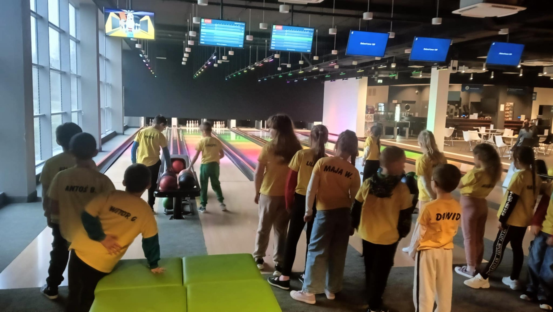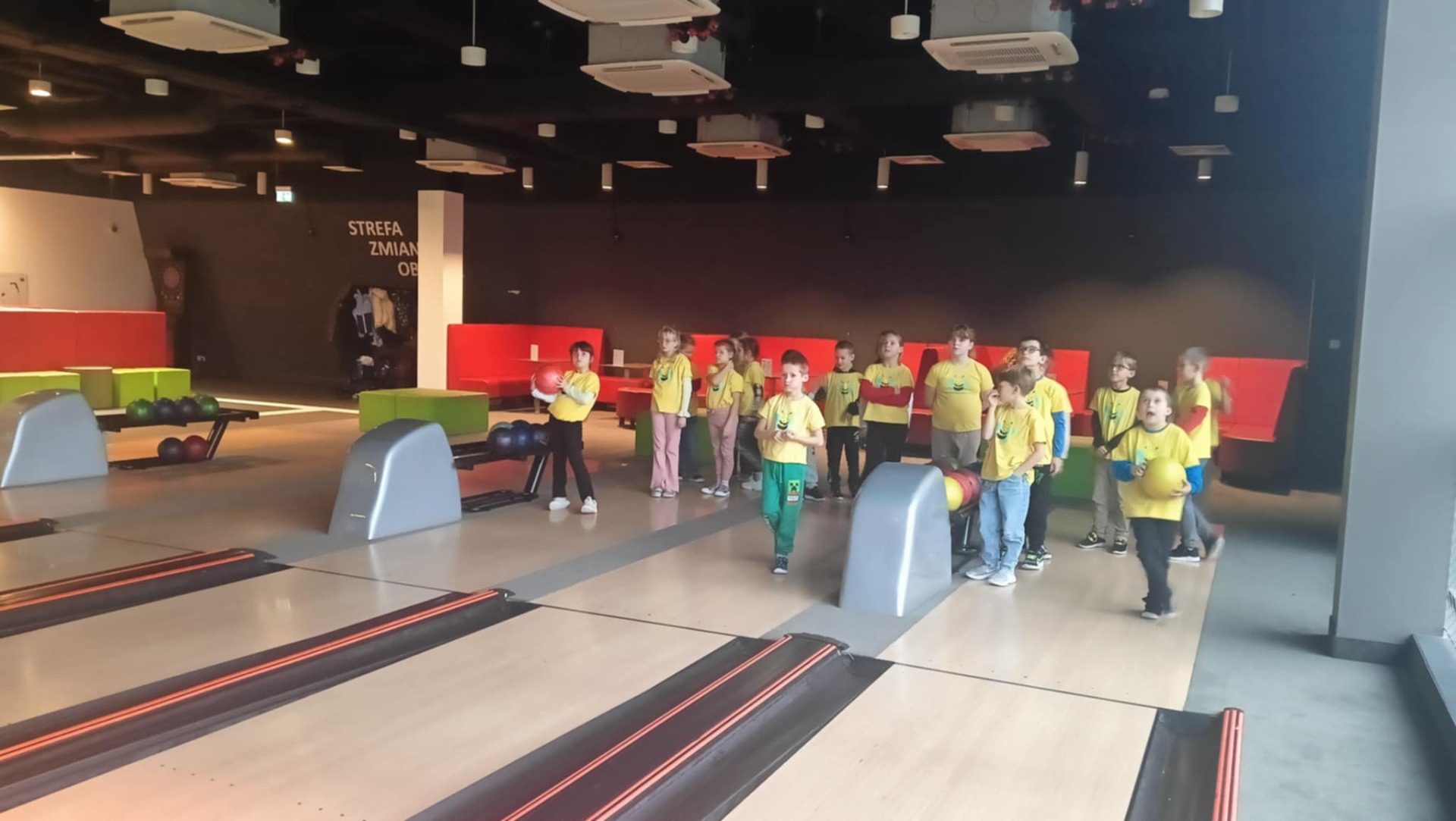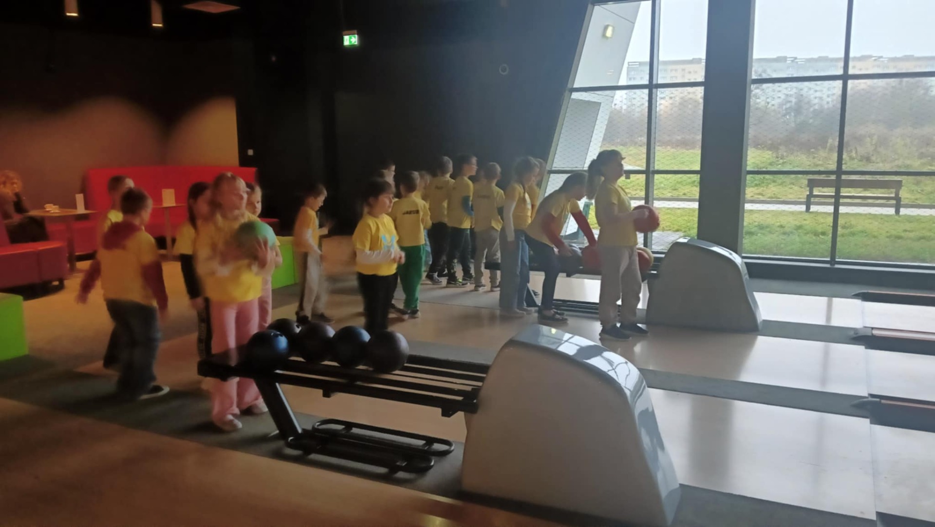 Pierwszym punktem programu była gra w kręgle 🎳. Dzieci z dużym zaangażowaniem rywalizowały w drużynach, ucząc się celności, współpracy i sportowego ducha 🤝. Każde zbicie kręgli wywoływało mnóstwo radości 😄.