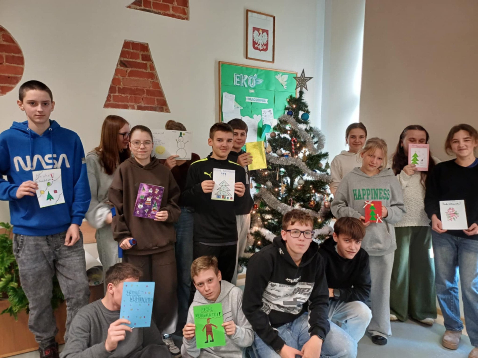 W ramach projektu odbyła się międzyszkolna wymiana kartek świątecznych, podczas której uczniowie przygotowali własnoręcznie wykonane kartki z życzeniami w języku niemieckim. Inicjatywa pozwoliła uczestnikom rozwijać umiejętności językowe, a także dzielić się świąteczną radością z rówieśnikami ze szkoły podstawowej nr.57 w Szczecinie.🎄🎅
