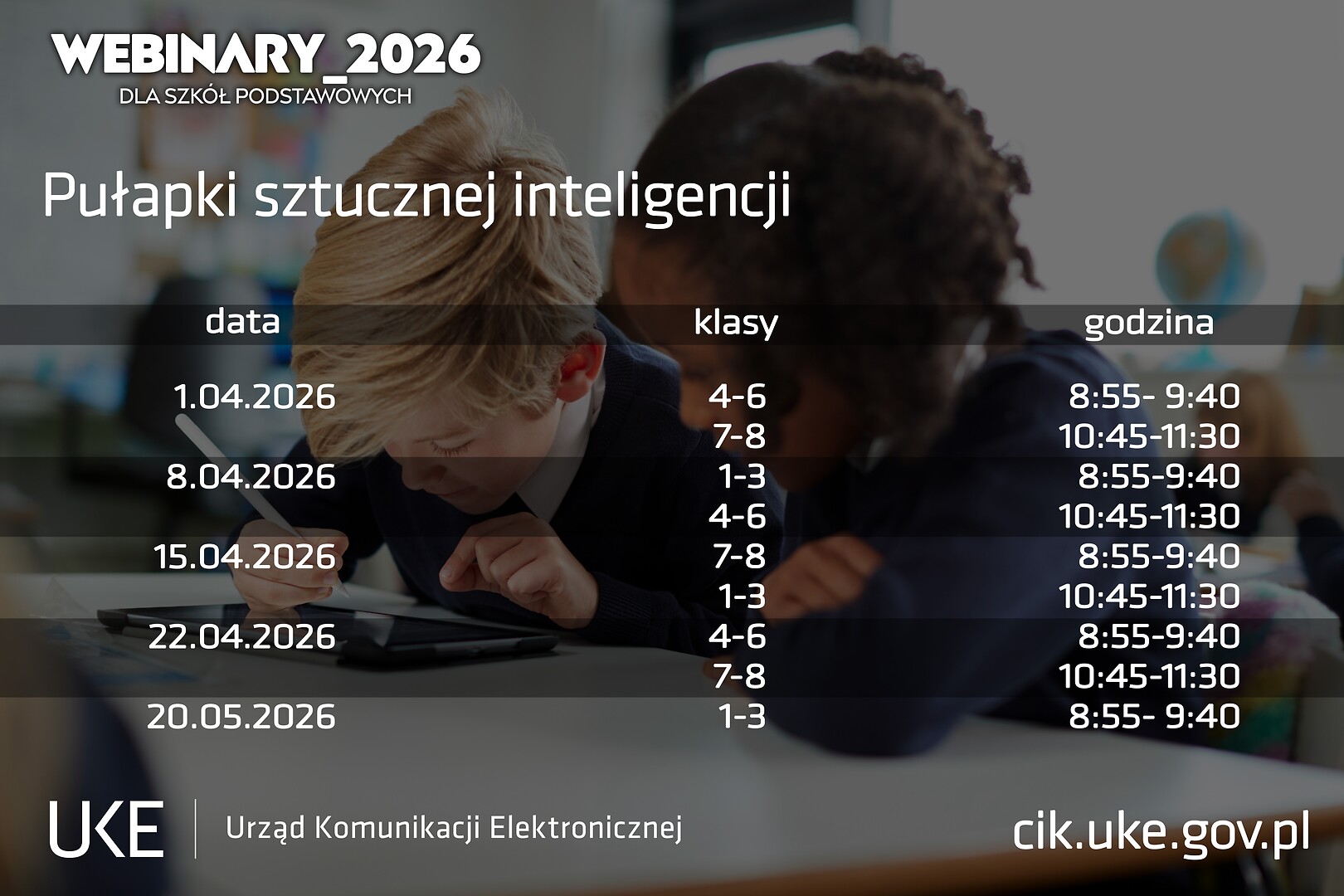 Szczegóły na stronie internetowej: https://cik.uke.gov.pl/webinary-edukacyjne/